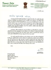 मुख्यमंत्री नायब सिंह सैनी को लिखे पत्र में सांसद कुमारी सैलजा ने कहा है कि गत नौ फरवरी को सिरसा दौरे पर युवाओं और खिलाडियों ने विभिन्न मांगों को लेकर उन्हें ज्ञापन सौंपा था। युवाओं ने उन्हें बताया था कि कुछ गांवों में सरकार की ओर जिम खोले गए है, शहरी क्षेत्र में गरीब बच्चों को जिम की सुविधा नहीं मिल पाती है ऐसे में शहरी क्षेत्रों में गरीब बच्चों के लिए जिम खोले जाए। खिलाड़ियों ने उन्हें बताया कि चौ. दलबीर सिंह स्टेडियम में जिम स्थापित किया गया था जो अब बंद हो चुका और वहां पर रखे उपकरण भी खराब हो गए है। अगर चौ. दलबीर सिंह स्टेडियम में जिम चालू किया जाता है तो कुछ युवक निशुल्क ही बच्चों का ट्रेनिंग देना शुरू कर देंगे। युवाओं ने यह भी मांग रखी थी कि गरीब बच्चों खासकर लड़कियों को ध्यान में रखते हुए नगर में कुछ प्रमुख स्थानों और गांवों में ई लाइब्रेरी खुलवाई जाए।